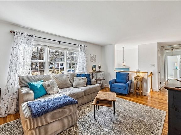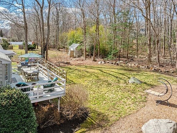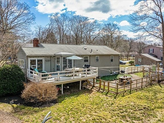 SUN OH CANCELLED! Excellent home in stellar pocket-neighborhood location! The living room is bright all day long and the wood burning fireplace exudes ambiance. The super-efficient kitchen has beautiful quartz counters and glass tile backsplash; the clever peninsula adds counter space and serving options. Opening the delightful french doors to generous west facing 12x24 deck extends your dining room and ensures you'll always have a prime table reservation for al fresco dining along with wicked nice sunsets. Currently used as a workout room, the addition has its own zone bb heat as well as slider to the deck; can easily be a home office. Lower level family/rec rm has access (under deck) to backyard. The level 1/2 acre backyard has a drainage easement and abuts conservation land. Chickens and coop are NOT included; fenced-in area would make excellent deer-proof garden. Awesome custom storage/work area in garage. New garage door openers '23. Replacement windows. 4 bed "Hoot" septic system