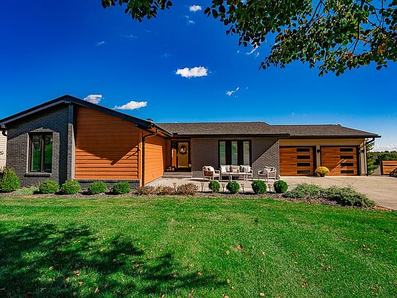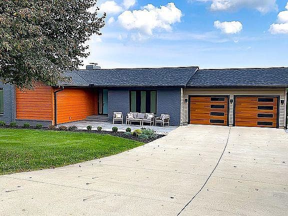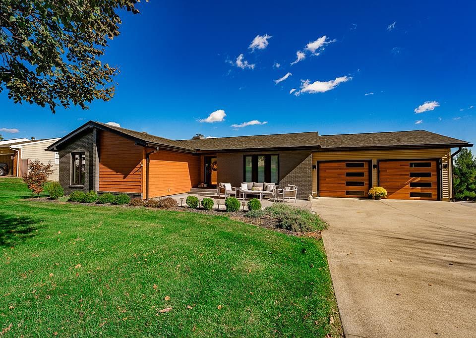 Welcome to a reimagined Mid-Century Modern Ranch home located in the desirable Hesswood Hills neighborhood. This four-bedroom, three-bath home offering over 3,000 sq feet including a full basement all beautifully refreshed by its designer/owner with warmth and sophistication. The kitchen flows into a dinning area with a classic brick fireplace framed on both sides with built-in cabinets, island for additional workspace. Double sliding glass doors lead to an expansive deck with scenic views overlooking rolling hills . The main floor provides a serene primary suite with walk-in closet and private bath. Two additional bedrooms and full bath. The bright lower level includes a large entertainment room with a second fireplace , new bedroom and walk-in closet and third full bathroom and new laundry room . Outdoors, enjoy a stamped concrete porch, covered porches on both levels , 30'x30' lighted basketball court. Move-in ready - your home for the holidays! *SEE FULL LIST OF IMPROVEMENTS