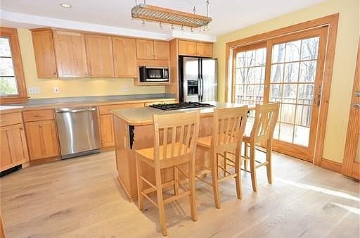 Offer deadline Mon, 1/7 by Noon. Country Charmer! This storybook gambrel colonial will surprise you! Nestled on a large private lot, this adorable updated home is move in ready! Heated sun room/mud room leads right into the sunny kitchen that features updated cabinets, big eat at island & stainless appliances including a gas Jennair Range! Sliders to BIG wrap around deck overlooking the fenced in grounds. Private half bath off the kitchen. Large living room with gleaming hardwood floors & open staircase to the second floor where you will find a large loft/ master bedroom, full updated bath & second guest room. This home offers Town water, Town sewer and NATURAL gas heat! Detached workshop/ garage is set up with dog kennel runs & features rustic barn board finish, electric oil filled baseboard heat & loads of storage. It even has a satellite TV hook up! There is a 2nd shed too.This house was completely restored by the previous owners in 2000, so much of the home is only 19 years old.