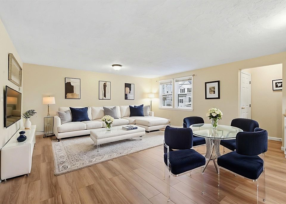 Your Search Ends Today! Discover this rarely available 3-bedroom condo in the heart of town, just minutes to the T and highway. Enjoy an open floor plan with spacious rooms, abundant natural light, gas cooking and heating, 1.5 baths, and in-building laundry. This home also offers the rare bonus of two parking spaces plus generous closets and storage. Perfect for those who want the space of a single-family home without the hassle of yard work—come make this your dream home today!