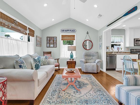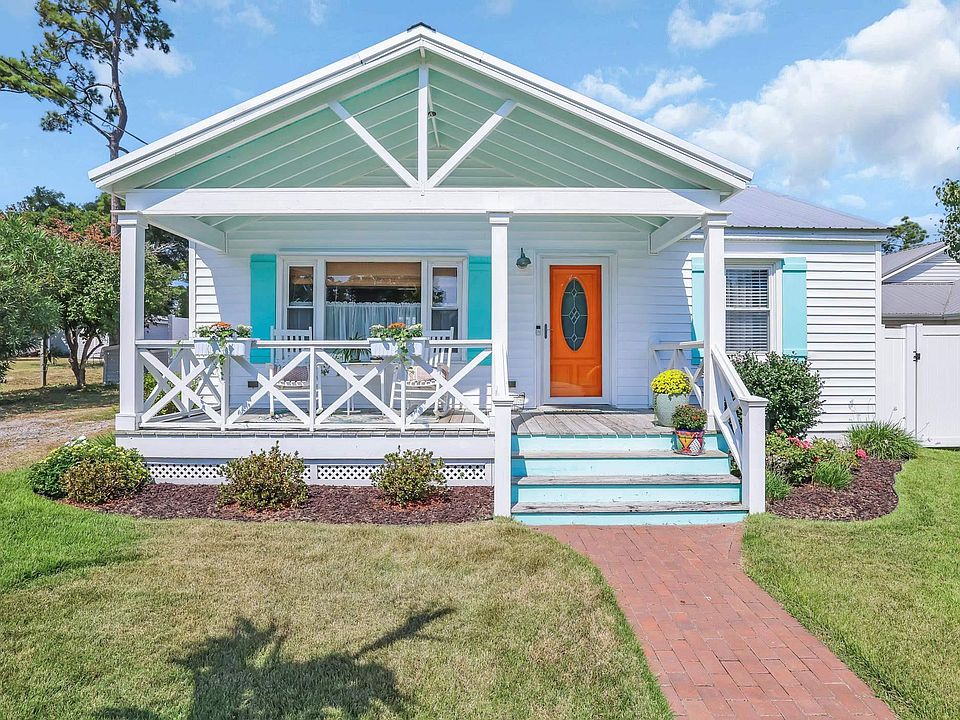 Southern front porchTrue beach bungalowUpdated kitchenSparkling in-ground poolCathedral ceilingsModern comfortTimeless character