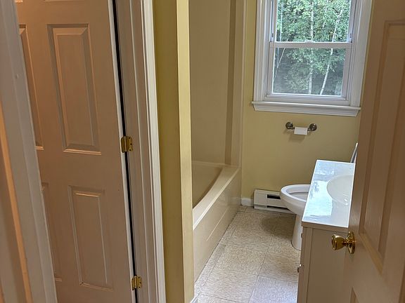 Large 2 bedroom 1 bath unit on 2nd floor of 4 unit building. Great country setting with nice backyard yet great commuting access via Rt 101 and Rt 125. Updated flooring and paint, newer vinyl windows, balcony overlooking backyard. Plenty of off street parking, coin op laundry on ground level. Building is professionally managed/ maintained and houses quiet professional tenants. Tenant responsible for heat (electric baseboard), electricity, hot water, cable/internet, trash. Landlord responsible for water/sewer, grounds/snow maintenance. This is a smoke free apartment Work and past rental references required with application Pets are negotiable Apartment is available August 1st. Security deposit equal to 1 months rent due at lease signing 1st months rent do at move in $2200 per month with a 1 year lease agreement.