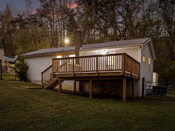 The exterior is just as impressive, featuring a newly built carport that doubles as storage or a workshop, providing added functionality. Step out onto the brand-new, spacious back deck to relax or entertain while enjoying views of the expansive, flat, and cleared yard—a perfect space for outdoor activities. The front porch, enclosed as a cozy sunroom, offers a tranquil escape to enjoy the peaceful surroundings, complete with glass windows that allow you to savor the outdoors without worrying about rain or insects.