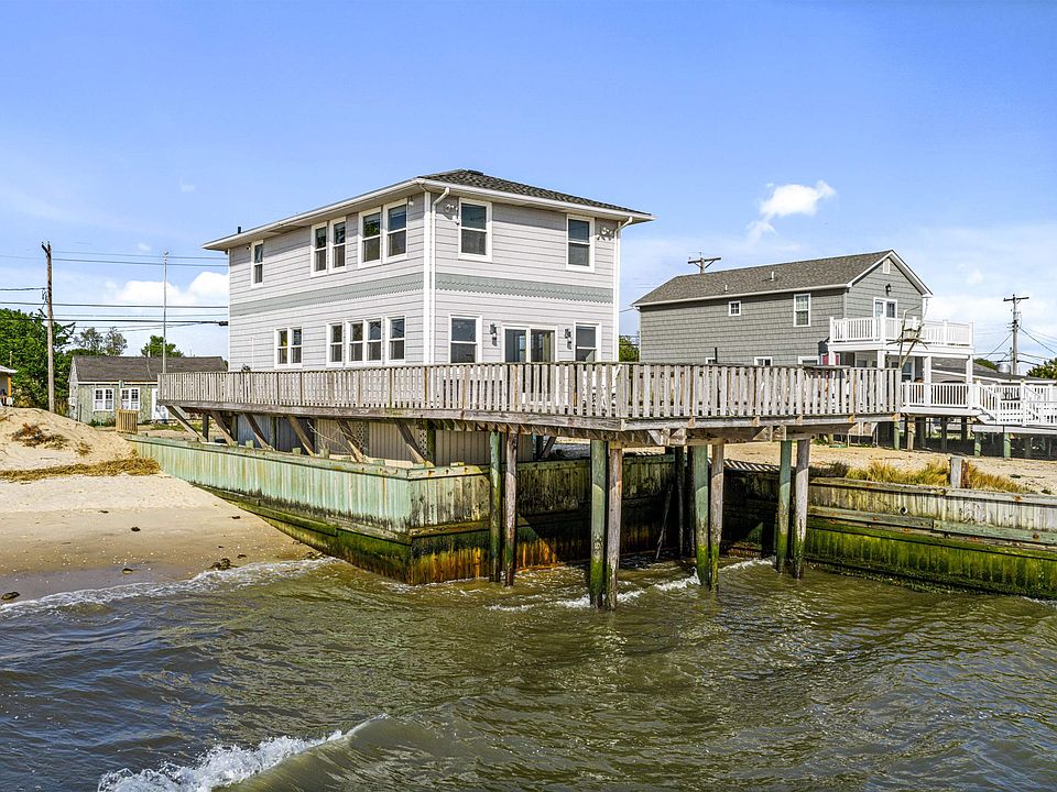 Welcome to this charming bay front retreat boasting panoramic sunset views of the open bay and a beach literally at your doorstep! This hidden gem offers four bedrooms, two bathrooms, and additional outdoor amenities, all nestled along the tranquil Delaware Bay. It's the first bulk headed house on the Delaware Bay side of Fortescue, offering direct access to a beautiful and extensive public beach extending all the way to "Fishing Creek" inlet which services a public boat ramp, gas dock, the Fortescue Marina and Higbee's boat ramp at the far end of the Marina. Step inside to discover an inviting main level featuring an open-concept family room with a modern kitchen. The kitchen is complete with custom cherry wood solid cabinets with top-of-the-line appliances. A full bathroom with stall shower, a convenient coat closet and endless views of the bay complete the main level. Head upstairs, where four bedrooms await, offering comfortable accommodations. A full bathroom and laundry closet provide added convenience. There are bamboo hardwood flooring and solid black doors throughout which adds warmth and charm to this retreat home. The outdoor features are equally remarkable, highlighted by a wraparound deck and a convenient enclosed outdoor shower, providing a refreshing way to rinse off after a day at the beach. Enjoy fishing, crabbing, kayaking, paddle boarding, swimming, or relaxing on the deck taking in the bay breezes and amazing sunsets. There are three storage sheds which offers plenty of space for storing outdoor equipment and beach essentials. This property is not only a haven for relaxation but also a fantastic investment opportunity with a strong Airbnb rental history. A must see! It is one of the very few beaches on the east coast that has a gorgeous view of the sunset.