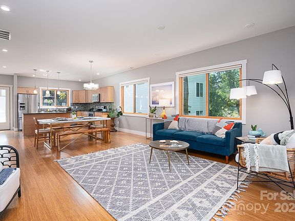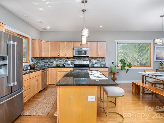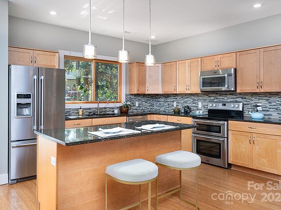 Absolutely charming West Asheville Greenbuilt home with Gold Level certification. Extremely convenient location walkable to Haywood Road shops and restaurants. Tons of curb appeal with nice landscaping, an inviting covered front porch and metal roof. Main level has an open layout with 9’ ceilings, wide plank bamboo floors and a sliding door leading to rear Trex deck. Kitchen is adorable and features soft-close cabinetry and a 6’ island with breakfast bar and pendant lighting. Primary bedroom is on the main level with a gorgeous ensuite bath featuring dual sinks and a beautifully tiled shower. All closets are huge and there are two additional cozy bedrooms and a full bathroom upstairs. The main level also features a cute office with sliding doors, a powder room and a laundry room! Let’s not forget the big backyard that backs up to greenspace. A truly remarkable home!