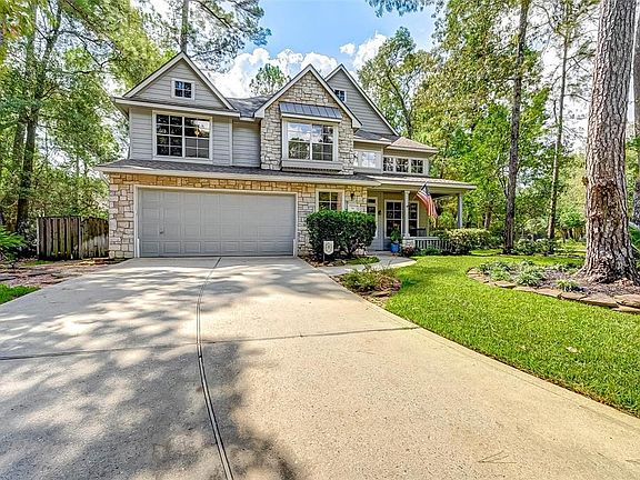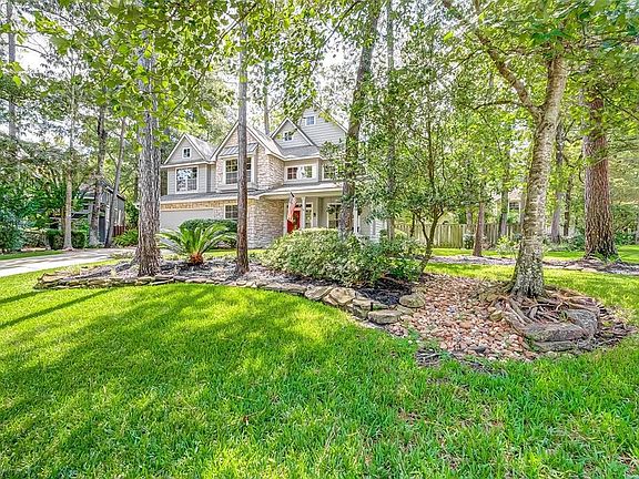 Lovely Lifeform home in the heart of the Woodlands. This wonderful property is located on the corner of a lg 11,048 sf lot in a culdesac court. Complete with a welcoming front porch to enjoy visiting w/neighbors or watching the children play. Home is approx. 2914 sf & boasts 4 bedrooms w/the possibility of a 5th can be used as an office. Plus an added large upstairs bonus/game room that can be used for home schooling, play room, TV room or whatever your heart desires.Primary Bedroom up complete w/Balcony overlooking the spacious backyard. Secondary Bedroom or Study Down w/Full Bath. The kitchen & breakfast room opens to the family room. Refrigerator, W&D Included.Walking Distance to Bush Elementary, Alden Bridge Shopping Center, Alden Bridge Park/Pool/Basketball Courts/Tennis Courts! Come view this lovely home today!