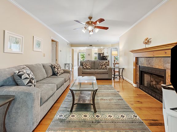 3-bedroom, 2-bathroom condo, surrounded by restaurants and premier golf courses! This home features beautiful wood floors in all living areas, while the sunroom and both bathrooms have stylish tile flooring no carpet. The large living area is accompanied by a cozy propane gas fireplace. The kitchen has been thoughtfully updated with new appliances and quartz countertops, connecting to a dining area with a bar, perfect for casual meals or entertaining guests. Laundry area is found in a separate room off the kitchen. The master suite has a private bathroom attached. Down the hall, the second bathroom is conveniently situated next to the second bedroom, while the third bedroom provides plenty of space for your guests. Features a sunroom and patio.
