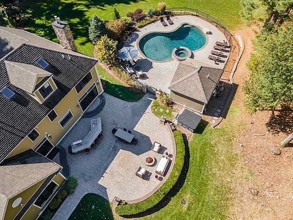 Grand six-bedroom home on a manicured private lot with saltwater pool and spa. Distinctive architecture and quality craftsmanship define the open layout. Expansive windows bring sunlight and views of the landscaped grounds. First and second-floor suites offer flexible living. The kitchen has a 9’ island, Wolf/Sub-Zero, banquette seating, walk-in and butler’s pantries, and opens to the outdoor kitchen, patio, and pool. The elegant dining room anchors the foyer, across from living room/office, with French doors to family room with fireplace, wet bar, and patio access. Generous bedrooms include bamboo floors, custom closets, and updated baths. A bonus suite with wet bar and full bath is ideal for media or guests. The third floor offers versatility-bedroom, playroom, office, or au pair suite-with full bath. Lower level includes a gym, sauna, full bath and hockey area, with Washer/Dryer in the garage. The backyard retreat features a cabana with bath/laundry, a fire pit, and outdoor kitchen.