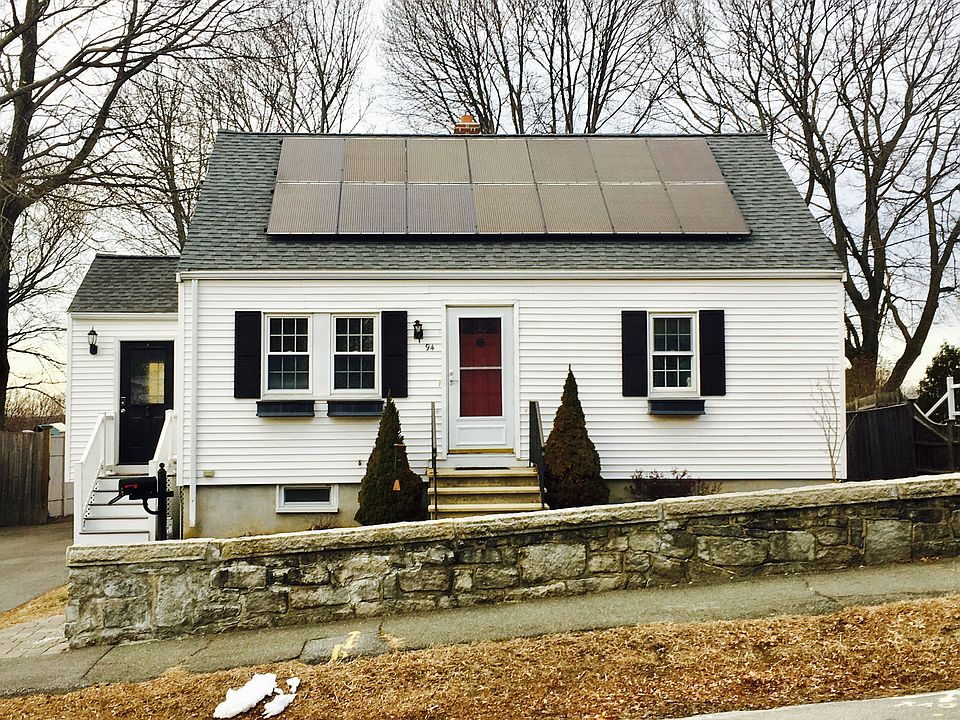 Move right in to this well cared for 3 Bed/2Bath CAPE with FINISHED basement! The bright sunroom greets you as you enter this TURNKEY home. Fully equipped kitchen with whole house water FILTRATION system, young black STAINLESS STEEL appliances and breakfast bar create a OPEN floor plan perfect for easy living. First floor bedroom boast HARDWOODS while both bedrooms on second level have new hardwood laminate, both baths updated. The lower level is perfect for entertaining with a WET BAR, full bathroom and additional storage space. The newer GAS boiler and energy efficient solar panels (owned outright) help with your utility costs. The mini split A/C units recently installed will keep you COOL this summer. Spend time RELAXING in the oversized FENCED backyard complete with SPRINKLER SYSTEM and storage SHED. Convenient location with easy access to 2 BUS lines,TRAIN, 95 and 93, shopping, restaurants and Horn Pond.