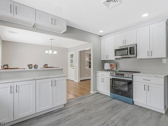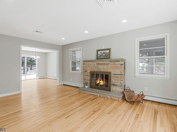 This beautifully renovated 3 bedroom home showcases premium finishes & refined craftsmanship throughout. The bright, sun-filled living room features a bay window w/ built-in storage seating & a striking stone wood-burning fireplace w/wall-mounted TV hookup. The formal dining room opens to a spacious deck & flows into a stunning brand-new kitchen w/ white soft-close cabinetry, granite countertops, breakfast bar, deep sink w/ a brushed nickel gooseneck faucet & SS GE appliances, including a French-door refrigerator, smooth top electric range, microwave, & dishwasher. A three-season sunroom provides additional flexible living space & overlooks the large, level yard perfect for entertaining or outdoor enjoyment. Upstairs are 3 generously sized bedrooms & a beautifully renovated hall bath featuring Italian tile flooring & a fully tiled tub surround w/ a waterfall spout, rainfall shower head, & modern touch on/off mirror. The primary bedroom offers a walk-in closet & a brand-new en-suite bath w/ Italian tile flooring, a custom tiled oversized shower w/ built-in shelving, rainfall & handheld fixtures, & a touch-activated mirror. Brushed nickel accents are featured throughout the home,adding a contemporary finish.The lower level includes a comfortable family room w/ a second wood-burning fireplace & direct access to the garage.One level below is a spacious recreation room/basement w/ washer/dryer hookups in place. Additional highlights include HW baseboard heat ,CAC & walk up attic.