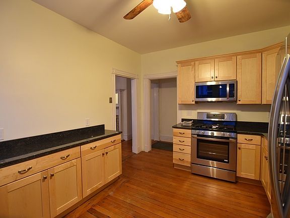 This is a large, beautiful and bright 2 bedroom unit. It is on the 1st floor of a Victorian era home in a beautiful residential setting & super convenient location. It has a separate entrance. Close to buses to Harvard Sq or to Central Sq. 2017 newer eat-in kitchen with Shaker style cabinetry plus granite counters & LG Stainless Steel appliances. Kitchen leads to a large covered deck to enjoy. Beautiful living room with a sun-room/Arch which can double as an office or music room. Separate dining room with pantry. Unique, one-of-a-kind long hallway to display your artwork. Two generous size bedrooms nicely set apart from the living areas and modern bath. Hardwood floors! Convenient washer and dryer hookups in unit. Not your typical apartment! You will love it!