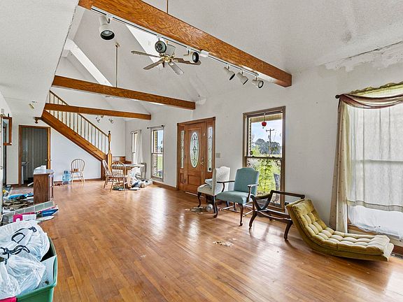 Welcome to this 4/2.5 on 1.89 acres! This home is ready for you to make it your own. Once you pull up you're greeted by a large front porch with round brick steps. Downstairs you have the master bedroom with a large walk-in closet, master bath with jetted tub, and separate shower. You also have a sunroom, living room, kitchen, eat-in area and laundry. Off the sunroom is another patio as well. Upstairs you'll find 3 more large bedrooms and a extra room as well. Home is being sold AS-is! Home will be Cash or conventional!