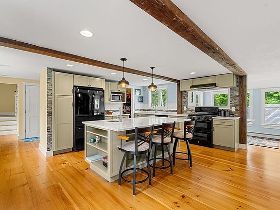 Step into centuries of charm at 94 Kimball Avenue—where 17th-century heritage meets thoughtful updates. Exposed beams, vaulted ceilings, and custom wood details give it a warm, rustic feel, while the quartz kitchen countertops, stone fireplace feature wall, and spacious pantry offer modern function and style. A lofted bedroom above the living area is perfect as a guest space, office, or in law suite. The first floor also includes a full bath, half bath, bonus room, and sliders to the backyard and deck. Upstairs, create your dream primary suite with ensuite and lounge, or use it as a secondary bedroom. Enjoy energy efficiency with an owned 7kW grid-tied solar system. Set on 2 private acres with close proximity to the Amesbury Town Forest, and just minutes to downtown shops, dining, and the lake, this home offers space, character, and convenience. Showings begin at open house Friday 5-7 and Saturday 12-2.