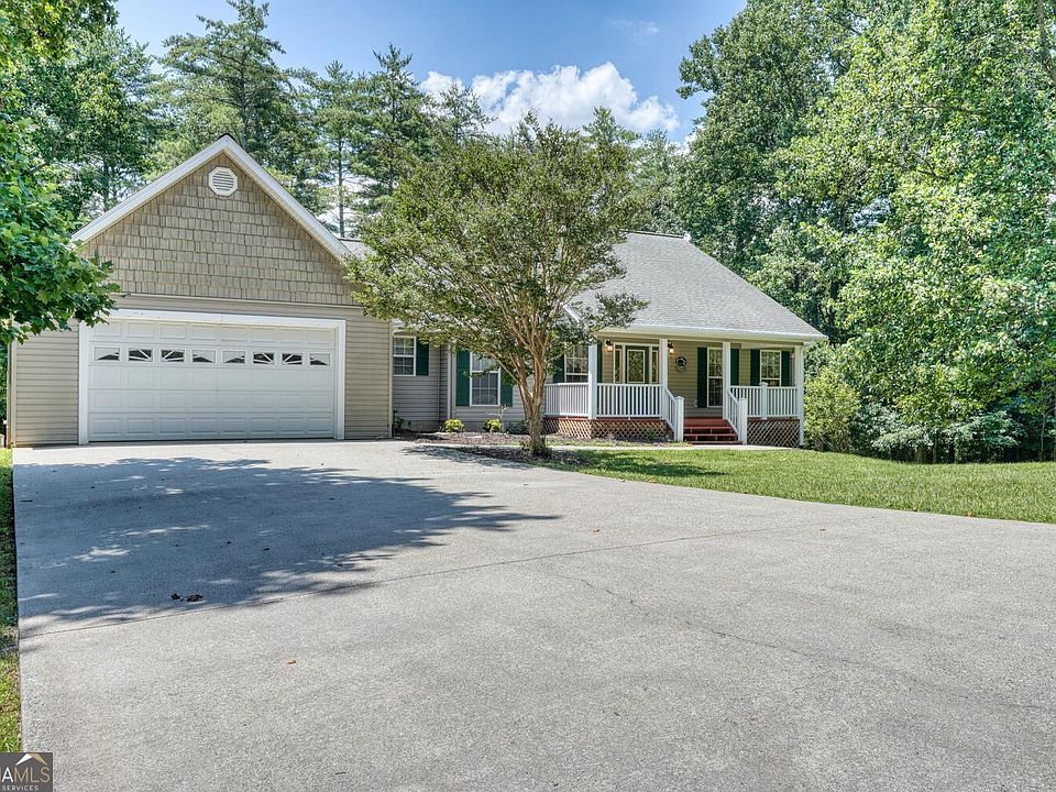 Nestled in the Eagle Bend Subdivision - at the end of a quiet road, this spacious 3 bedroom 3 bath home offers unmatched privacy and a beautifully open, gently sloping yard-ideal for play, pets, or simply soaking in the peace and quiet of nature. The property features a concrete driveway, low-maintenance vinyl siding, and an attached two-car garage on the main floor, plus a third garage on the basement level-perfect for parking special vehicles or storing equipment. Step onto the welcoming front porch or retreat to the back deck, where you'll find both a covered area for relaxing and a sunny, open section ideal for grilling. Inside, the home boasts a formal dining room, a large breakfast room, and an expansive living room anchored by a striking rock fireplace and soaring wood cathedral ceilings. The fully equipped kitchen includes all appliances and a full pantry for storage and convenience. The thoughtful split floor plan includes a spacious master suite complete with double sinks, a step-in shower, a built-in bench with hidden storage, and a massive walk-in closet. A large laundry room offers even more function, featuring a utility sink, cabinetry, and a dedicated office or craft nook. Downstairs, the finished area of the basement is tiled and includes a full bath, a living area & a game room or craft room and a wet bar with sink-ideal for entertaining or multigenerational living. You'll also find a generous flex room with a closet, ample storage throughout, and a separate workshop area with its own wash sink, regular exterior door, and garage door access-perfect for hobbies or hands-on projects. The home also features a new gas furnace and a newer, zoned HVAC system for year-round comfort. This private, well-appointed property combines practicality, comfort, and a serene setting just waiting to welcome you home.