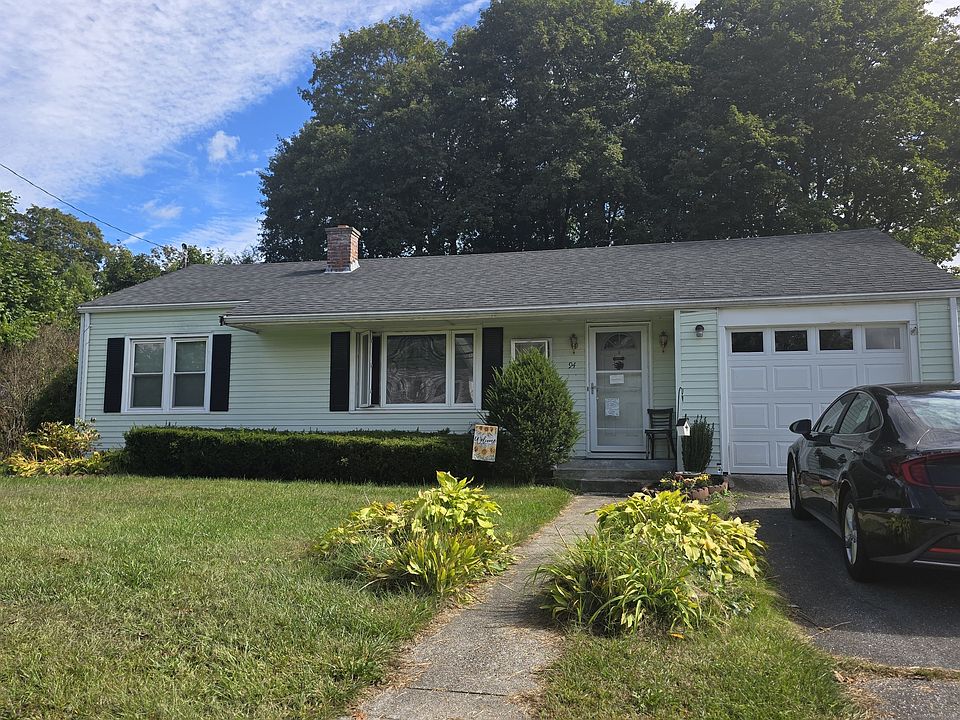 Very cute home with nice setting including private back yard for entertaining. Nice kitchen cabinets and newer appliances. Roof is 7 years old, and home has easy town water, sewer and gas for efficiency. Eat in kitchen is open to living room, and has access to 3 season room and outdoor patio area. Basement is partially finished and offers space for more improvement. Attached 1 car garage with newer automatic door, plus 2 driveways for easy parking. 2 sheds for extra storage. Home has opportunity to build some sweat equity with improvements. Cash or conventional financing requested and sold as is. VERY convenient listing with easy access to all major routes and to RI.