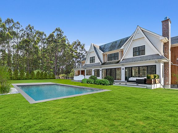 Rental Registration #: RP230739 Virtual tour available. Contact for details. Solid, quality 2019 new build (with a plethora of upgrades) tucked behind Wolffer Estate in Sagaponack. No expense was spared in the design, construction, or furnishing of this massive 6 bedroom, 6.5 bath home brimming with five-star amenities: First Floor: Grand entry hall with 24 foot ceilings, formal and informal living rooms, formal dining room, state of the art open concept eat-in-kitchen with floating island and top of the line appliances, first floor master suite with en suite bathroom, temperature-controlled wine display room, mud room, and two-car garage featuring electric charging ports. Second Floor: Grand landing, master suite wing with private outdoor patio, en suite bath, and two oversized walk in closets, upstairs den, three guest bedrooms with en suite baths, and laundry room. Lower Level: Fully finished and furnished with home theater, guest room with en suite bath, gym/yoga studio complete with Peloton bike, and lounge. Situated on a lush acre, the grounds have been designed for optimal entertaining with covered patio, built in grill, outdoor dining area, firepit, and various clusters of designer furniture. Gaze out over the backyard to the heated gunite pool where new pavers have been added for even more places to relax and enjoy summer in one of the most desirable & convenient locations in The Hamptons. 2 week minimum. Listing ID: 860650