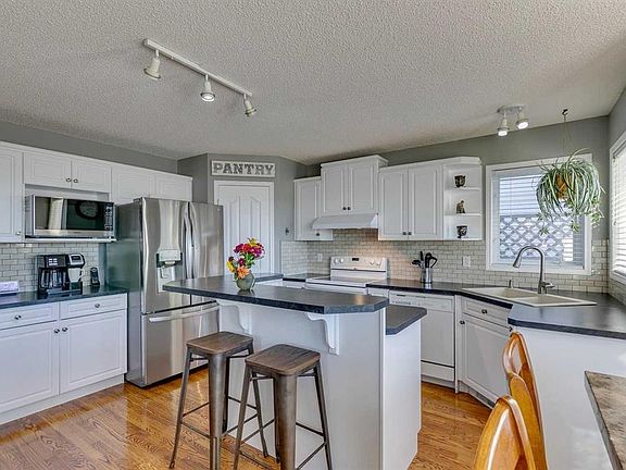 Exceptional Value in Somerset! Tucked away on a quiet, family-friendly street, this beautifully maintained two-storey home offers outstanding value with a sunny south-facing pie lot that’s both private and inviting. With over 2,000 sq. ft. of developed living space, 4 bedrooms, and 3.5 bathrooms, central air conditioning, this home combines comfort, functionality, and location in one incredible package. The main floor features hardwood floors, fresh paint, loads of light from the south windows and an open-concept design that’s perfect for everyday living. The updated kitchen is the heart of the home, complete with modern countertops, a stylish tile backsplash, and plenty of workspace. It flows seamlessly into the bright living room anchored by a cozy gas fireplace — the perfect spot to relax or entertain. A practical rear mudroom adds everyday convenience, while large south-facing windows fill the home with natural light throughout the day. Upstairs, you’ll find three generous bedrooms, including a spacious primary suite with a private ensuite and soaker tub, plus a versatile bonus room ideal for a home office, playroom, or media space. The fully finished basement offers a fourth bedroom with a walk-in closet, a full bathroom, and a large recreation area — perfect for guests or teens needing extra space. Step outside to your sunny south backyard, complete with a large deck for summer barbecues, a flagstone firepit area, and a custom smart-controlled waterfall feature — a unique touch that makes this home truly special. The oversized pie lot offers extra space and privacy, with mature landscaping and room to enjoy year-round. Located in desirable Somerset, you’re close to everything — schools, playgrounds, the Somerset Water Park, Shawnessy shopping district, restaurants, C-Train station, and easy access to Stoney and Macleod Trail. This home represents exceptional value in one of Calgary’s most convenient and family-oriented communities.