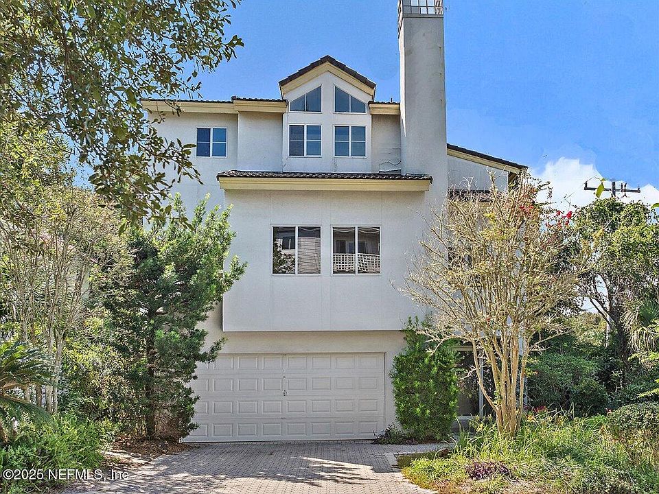 Talk about GREAT location. Steps to the ocean, east of Seminole Road, in small, quiet Cul-de-sac. The 3 story home has tons of potential as a renovation, or the location supports a tear down for lot value. The home has 3 bedrooms and 2.5 baths with 2 bedrooms and 1 bath down. One opens to a private patio, 2nd level is very open living with high ceilings, sliding door to 2 decks, fireplace and a rounded wall for style. 3rd level is a private, primary suite with a large bath and closet. This home has interesting lines and spaces with an art deco flair. Good size 2 car garage. Neighborhood has private beach access. Bike or golf cart ride to AB town center, parks, green markets, A rated school & Atlantic Beach County Club.