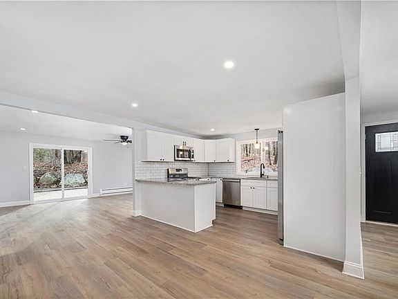 Open Concept 3 Bed / 2Bath Ranch in a Desirable Location! ** This distinctive single level contemporary is perfectly sited on a 1.66 acre lot with both privacy & easy access to all amenities. ** The homes' smart floor plan with open flow encourages easy living & every day entertaining, while an abundance of windows fill each room with natural light & views of the homes lightly wooded perimeters. **This home is finished with a brand new roof and is now connected to town sewer** The stylish kitchen is nicely appointed with custom white cabinetry, granite countertops, new appliances and is adjacent to a dining area and open living room * The master suite includes a large walk-in closet. There are two additional beds, two new baths & laundry to complete the main level. * In addition this impeccable property offers a garage equipped with an oversized door with a mechanics bay as well as a standard sized door and extended bay. This garage is a unique opportunity for the storage of multiple vehicles or large equipment. There is generous storage space, shed, and a spacious rear patio.** Within close proximity to all amenities, shopping and highway access, this home is truly a rare offering!