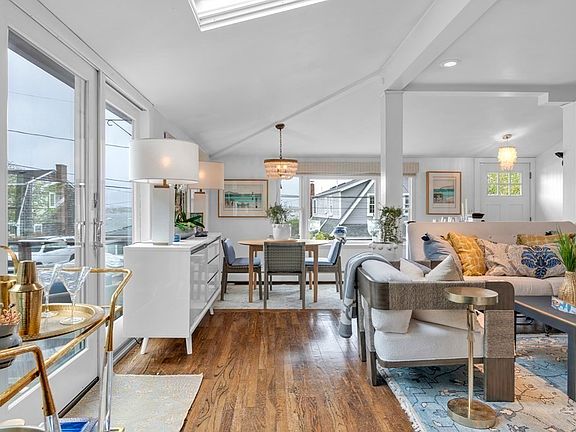 Chic Beach Bungalow with water views just in-time to enjoy the summer of 2023! This home speaks to any buyer - whether you're downsizing, upsizing, looking for one floor living, an investment property, or a summer home. Unbelievable natural light even on a gloomy day thanks to the abundance of windows and skylights. Settled on a meticulously landscaped and maintained parcel, the back deck and fenced in patio welcome guests with open arms. Gorgeous sunsets are in your future thanks to this West facing house. Wash off the sand and salt in your outdoor shower after a short jaunt home from Stramski's Beach. Two bedrooms with a full bathroom on the first floor, a versatile third bedroom and additional 3/4 bathroom on the lower level, plenty of basement and attic storage, central AC, many updates throughout and living on a dead-end street make this an unforgettable opportunity. You'll regret not coming to see this truly unique property with expansion potential!