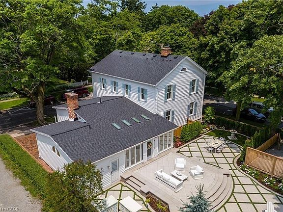 Located in one of the most desirable areas of Old Town, beautiful marriage of old-world charm and modern upgrades. Walk to iconic Queen St. with its boutiques, restaurants and theatres or take a short stroll to the waterfront. Enjoy the serenity of Queen's Royal Park or play a round of golf at Canada's oldest golf course. This home showcases stunning decor such as designer light fixtures, custom drapes, valances and luxurious wall coverings. Enter through the antique door into the elegant front entry with gleaming hardwood floors throughout. The formal dining room is sheer opulence with its antique chandelier set in a plaster ceiling medallion, decorative built-in shelving and fireplace with hand-crafted mantle. The grand living room features a beautiful archway with custom millwork set between coffered ceilings with designer brass fixtures, built-in bookcase and buffet with accent mirrored wall. Bright and airy, the kitchen is definitely the heart of the home with 5 stainless steel appliances, center island, quartz countertops, Nantucket grey cabinetry, heated floors and cozy fireplace. Spacious family room with its comfortable seating centered around a fireplace with hand-crafted mantle and soaring vaulted ceiling with contemporary bubble chandeliers. A gorgeous sunken sunroom which offers floor-to-ceiling windows and 4 skylights overlooking the jaw-dropping two-tiered yard. Main floor guest retreat with ensuite. The Grand Victorian staircase features designer runner and custom wainscotting leading to the elegant and spacious landing. Each of the 3 bedrooms have beautiful hardwood flooring, the Primary bedroom with private water closet and spa-like ensuite bath with heated herringbone tile, sumptuous soaker tub, walk-in glass rain shower. Second and third bedrooms share a bath with heated marble flooring and custom vanity. A cozy rec-room and 2nd kitchen in the lower level completes this charming home.