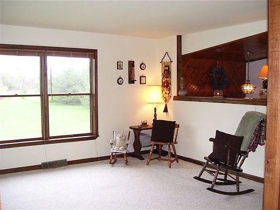 Bright and sunny Raised Ranch with big windows on 10 acres +/-. Formal dining and 3 nice bedrooms up. Master bath has been updated. Lower level has possible 4th bedroom and potential bath, family room and huge heated workshop/workout room, expansion space. Well insulated. Animals ok.
