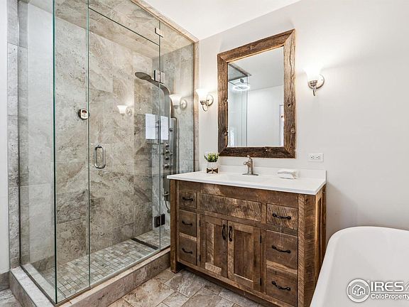 Discover peace and serenity in this beautifully updated home nestled on a breathtaking 2.06-acre lot with a seasonal stream & private trails, expansive decks & patios & luxury finishes & features throughout. Upon entering, you're welcomed by an open floor plan, featuring a remodeled kitchen with new 42-inch cabinets, a designer tile backsplash, custom poured concrete countertops, & brand-new stainless-steel appliances. The kitchen flows seamlessly into the dining area and Great Room, where vaulted ceilings and sweeping views create an inviting atmosphere. The large main level primary suite offers an upgraded bathroom, complete with a lavish walk-in shower with a deluxe showerhead, multiple body sprays & a steam shower, a freestanding clawfoot tub, a dual sink vanity, & designer tile finishes. The main level is further enhanced by a chic powder bath with reclaimed wood accent wall, 2 additional bedrooms, extensive luxury vinyl flooring, new designer wrought iron railings, updated light fixtures, & fresh paint. The walk-out basement offers a spacious family room, a full bath with a quartz vanity, heated tile floors, & a built-in linen cabinet. It also includes a versatile bonus room perfect for an office or non-conforming bedroom & a large laundry room. Additional upgrades include a backup generator, reverse osmosis system at the kitchen sink, a newly installed well head, a whole-house water softener, a large storage area under the oversized two-car garage & more. Experience the tranquility of this mountain retreat, just 15 minutes from the city yet offering a serene escape that feels worlds away. The property boasts a seasonal stream with a charming bridge that leads to the owner made private trails within the 2.06 acre lot. Relish breathtaking sunrises and sunsets from the expansive decks that wrap around the front and back or unwind on the lower covered patio together offering over 700 square feet of outdoor space.