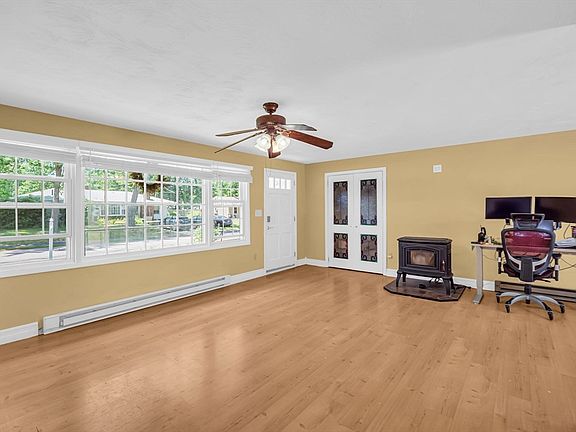 Convenient one floor living in established neighborhood. Possibilities galore with this spacious two bedroom ranch main house. Two bedrooms are joined by a bonus room unlimited only by imagination; perhaps a third bedroom or office. Formal living room in addition to family room and dining area complete the main house. Don’t forget the generously-sized detached 2 car insulated garage with fully finished loft used as recreation retreat/media room equipped with bar, pool table, and projector w/theater seating! Discover the money-saving pellet stoves in both main house and garage loft. As you journey to the back of the house and exit the slider door, step onto the generous deck in the private, fully fenced back yard.