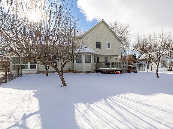 Welcome to 94 Stone Road, your Dream Retreat with a PITTSFORD ADDRESS and low Henrietta taxes! Well-maintained 3-bed, 2.5-bath with an open floor plan. Gorgeous kitchen with granite countertops and matching backsplash with access to a large rear deck with a built-in bench seat and newly added fenced in space . The spacious living room seamlessly connects to creating an ideal space for entertaining, separate dining room, and front living area. Enjoy pears, apples, peaches, strawberries, blackberries, and raspberries from your own backyard embracing the serenity of nature. 2015 addition of a delightful four-season room for year-round relaxation, new furnace in 2013, Greenlight in the home, and a new hot water heater in 2023. Don’t miss out on the opportunity to own this gem-your dream home awaits. Showing to begin 1/28/25 @ 9:00 am, Delayed Negotiation until 2/3/25 @ 12pm noon.