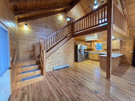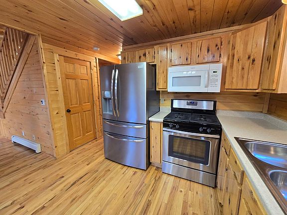 Rustic Log Home for Rent in Highland Lakes! Nestled on a serene, wooded acre, this rustic yet inviting log home offers the perfect blend of mountain living and modern comfort. Step inside and you'll be welcomed by gleaming hardwood floors and the cozy glow of a free-standing wood-burning fireplace. The main level features a spacious bedroom, full bath, convenient laundry room, and a dining area with a walk-out to the back deck, perfect for enjoying your peaceful surroundings. The kitchen is a true highlight with a gas range oven and an oversized stainless-steel refrigerator. Upstairs, retreat to the stunning master suite complete with a private bath, walk-in closet, and loft space. The lower level offers even more versatility with a bedroom, bath with walk-in shower, a flexible bonus nook (ideal for an office or reading corner), plus direct garage access with ample shelving for storage. Outside, you'll love the oversized two-car garage, handy storage shed, paved driveway, and the tranquil setting this property provides. Best of all, the Highland Lakes community offers exclusive access to ponds, trails, and a clubhouse, making this home a true mountain retreat with neighborhood charm. This one-of-a-kind property is ready for you to make it home!