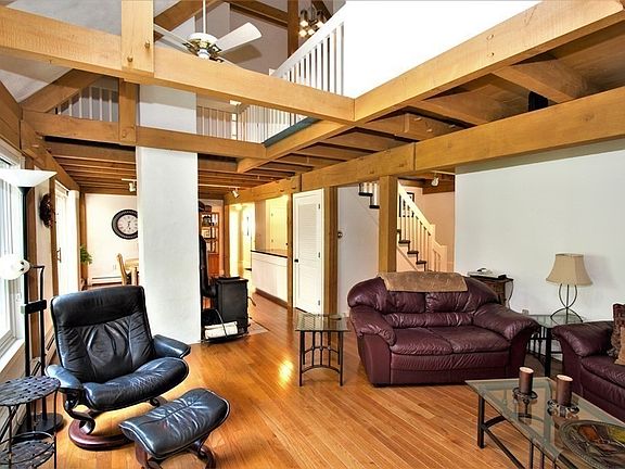 - Features: Wood / Coal / Pellet Stove, Skylight, Ceiling Fan(s), Beamed Ceilings, Flooring - Hardwood