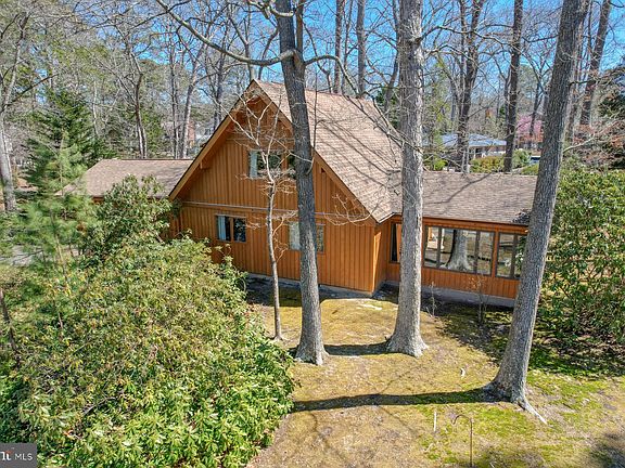 Welcome to Henlopen Acres – A Rare Offering Between the Canal and the Beach! Set on a rare, private half acre triangular peninsula style lot between the Lewes-Rehoboth Canal and the Atlantic Ocean, this stunning contemporary residence is nestled on a spacious, wooded lot just blocks from the beach. Offering the perfect blend of privacy, comfort, and coastal charm, this unique home is a rare find in one of the area's most coveted neighborhoods. This distinctive, three-sided lot resembles a peninsula and is outlined by natural tree cover and set apart by its generous triangular shape, offering a rare sense of seclusion and privacy on all sides. There is Town of Henlopen Acres property located around this lot that can not be built on, and offers an even more private setting. Step inside to discover a light-filled, open-concept great room, where vaulted ceilings, rich wood accents, and dramatic floor-to-ceiling windows frame serene views of the surrounding forest. Hardwood floors and a freestanding wood-burning stove add warmth and character to this inviting space. The great room flows seamlessly into the dining area, complete with exposed wood beams and hardwood flooring. Sliding glass doors open to a generous outdoor patio featuring a cozy fire pit—ideal for entertaining or unwinding in nature. The well-appointed kitchen features crisp white cabinetry, quartz countertops, propane cooking, and luxury vinyl plank flooring. A charming eat-in nook with built-in bookshelves adds a homey touch, and offers convenient access to both the laundry area and powder room. The three-season room is perfect for year-round relaxation, with ample windows to capture ocean breezes and baseboard heating to keep things cozy in cooler months. The home’s thoughtful layout includes two spacious first-floor bedrooms with hardwood floors, wood beam ceilings, and a shared hallway bathroom. Upstairs, a private ensuite bedroom offers a large closet and tranquil treetop views. On the lower level, you’ll find a walk-out two-car garage with an outdoor shower—perfect after a day at the beach—as well as a mechanical/workshop space and a bonus room with built-in bookshelves, ideal for games or hobbies. Outdoors, enjoy a nature lover’s paradise with mature landscaping, multiple seating areas, and scenic walking paths perfect for birdwatching, gardening, or quiet reflection. Featuring a new HVAC system, new washer and dryer, invisible pet fence, & much more. Residents of Henlopen Acres enjoy exclusive access to a private beach and the option to join the Henlopen Acres Beach Club, which includes a clubhouse, tennis courts, and beach chair and umbrella service. Boat enthusiasts can also take advantage of the community’s private marina—perfect for fishing, canal cruising, and coastal exploration. Art lovers will appreciate being just moments away from the Rehoboth Art League, offering year-round classes, exhibits, and cultural events. Whether you're searching for a peaceful year-round residence or a sophisticated weekend retreat, this exceptional property combines timeless design with unbeatable location. Don’t miss your chance to own a one-of-a-kind home in the heart of Henlopen Acres. Take the video tour!