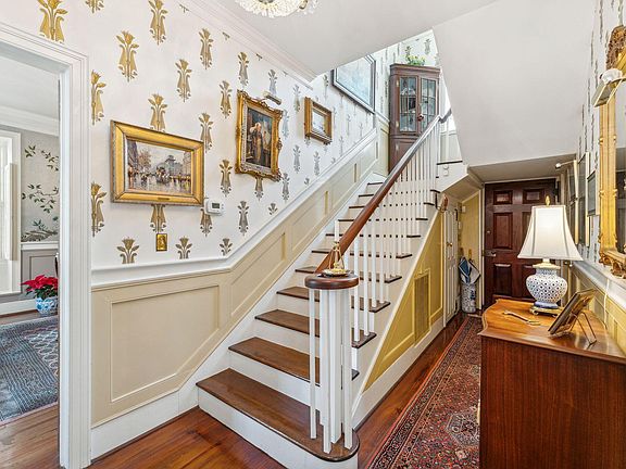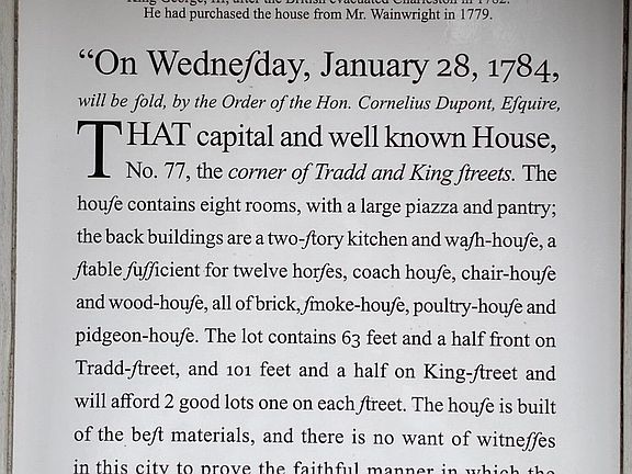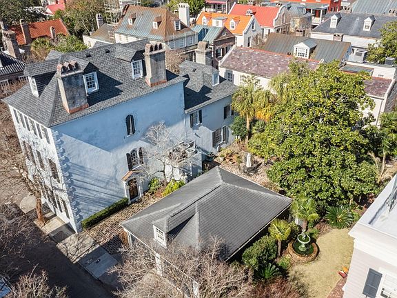 Historic 1760 stucco over brick advertised for sale in 1784 as ''That capital and well known house with a large piazza and pantry...the house is built of the best materials... Once the Symphony Designer house Restored in the 1990's 94 Tradd is a quintessential classic Charleston Single house. Entrance is from King Street and the abundant off-street parking and garage on Tradd Street. A gracious and private walled courtyard is a great space for entertaining. The well-proportioned living and dining rooms with grand fireplaces lead to the kitchen in the original kitchen house with wet bar and a half bath. The second floor contains a study and extensive master bedroom suite. The third and fourth floors have two bedrooms per floors affording stunning views of the Charleston skyline.