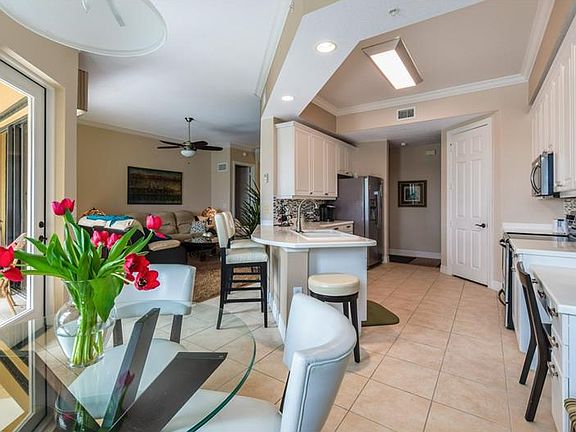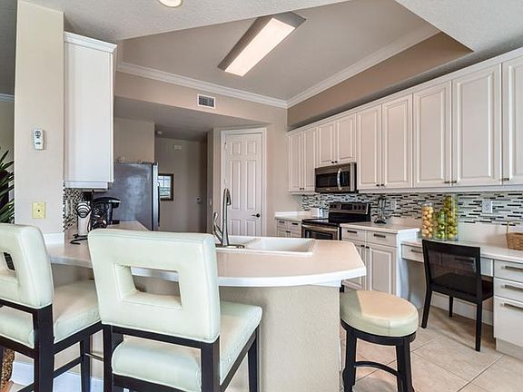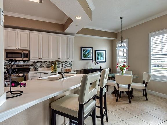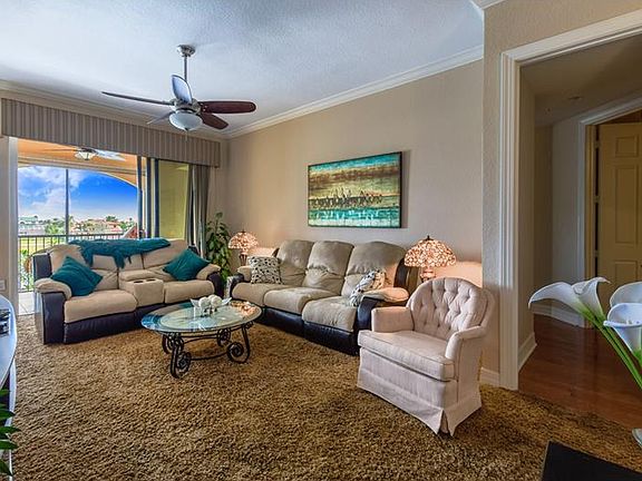 MILLION $$ WATER VIEW FROM THIS STUNNING 3RD FLOOR VIVANTE CONDO OVERLOOKING THE LARGE LAKE WITH MULTIPLE FOUNTAINS AND BEAUTIFUL SUNRISES! This Condo has quality hardwood floor throughout the main living area, even under the lovely custom rug in the living room that just lifts up if you don't want it! Tiled in Kitchen and baths. Very nicely appointed with Crown Molding, Plantation Shutters, Hunter Douglas Blinds, updated light fixtures and cabinet hardware. Nearly 1700 square feet, 2 bedroom, 2 bath split floor plan with an open room that can be used for formal dining, office or den.The stunning kitchen nicely accented with a glass tiled back splash, corian counters, and stainless steel appliances. NEW A/C, WASHER AND DRY (PER OWNER). 10 ft ceilings. Being sold TASTEFULLY FURNISHED and TURN KEY! Vivante's world class amentities include a 25,000 sq ft Club House with a fitness center with yoga/aerobic room, a spa complete with a steam and dry sauna, a computer lab, library, billiards, card room, media room, craft room and a large banquet hall. Swim in your choice of the relaxing lagoon style pool or the large lap pool. FIre pit area and grilling stations too! 6 Tennis Courts with it's own pro! VIVANTE IS A LIFE STYLE WITH THE WONDERFUL BENEFITS OF BEAUTIFUL PUNTA GORDA ISLES, HISTORIC DOWN PUNTA GORDA WITH IT'S WATER FRONT PARKS & RESTAURANTS AND CHARLOTTE HARBOR ALL JUST MINUTES AWAY! Garage IS GREAT STORAGE is 9413 and mailbox is 14A.