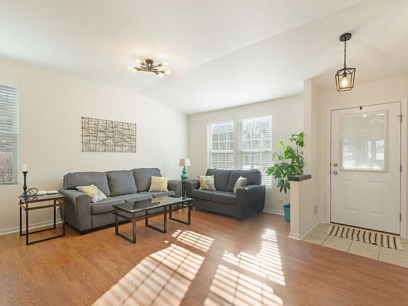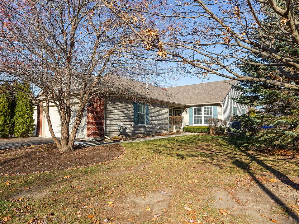 Welcome to Bradford Place, an over 55 adult community! This beautifully updated ranch style end unit boasts 2 bedrooms, plus a den and 2 full baths. The inviting porch and foyer lead to the living room with a vaulted ceiling. The dining room is a generous size and ideal for entertaining. The kitchen offers plenty of storage and an eating area next to a sunny window. The laundry room connects to the 2 car garage which includes 2 built-in storage closets! The primary bedroom features it's own bathroom with a shower and well-designed walk-in closet. There is also a full bath in the hallway which includes a tub. Adjacent to the hallway is a second bedroom as well as a den/office which leads out to the private patio and greenspace. Surrounded by mature trees and professional landscaping, this quiet, low maintenance community is waiting for you! Many new improvements highlight this home and include: Newer roof, furnace, a/c, water heater, flooring, kitchen appliances and more! Move right in to this well cared for home!
