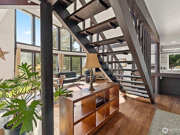 A rare blend of opportunity and lifestyle awaits at this Sequim property. Set on 1.26 acres with mountain views, the 2-bed, 1.75-bath main home is complemented by a private 1-bed, 0.75-bath ADU that provides solid rental income, flexible guest space, or WFH area. The cozy main residence features passive solar design for energy efficiency, light-filled interiors with 18' floor-to-ceiling windows, thick hardwood floors, exposed timber beams, attached sunroom, and a covered porch—all tucked at the end of a quiet lane. The generous lot offers ample space for homesteading or potential development (buyer to verify with county). Less than 2 miles from downtown, this property delivers privacy, convenience, and long-term value. No HOA.