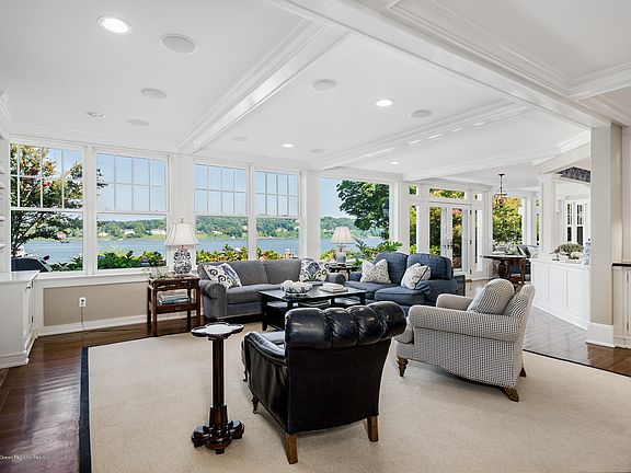 A RARE OFFERING IN RUMSON! Highly sought after NAVESINK RIVERFRONT ESTATE artfully set high & dry on 2.5+ private acres w/ DEEP WATER DOCK w/ boat lift & 25'x25' waterfront deck for seating - this is the one you've been waiting for! Main residence has been beautifully expanded offering a fabulous sun lit open floor plan w/ views fr. nearly every room. Gourmet kitchen w/ custom inset cabinetry, prof. grade appl & breakfast area, great room w/ coffered ceiling, handsome FP & beautiful built-ins. Lux master suite w/ expansive WIC, spa-like bath w/ steam shower & outstanding views. Generous sized en-suite BR's & guest suite w/ kitchenette PLUS a DETACHED legal guest house w/ beautifully updated interior, full kitchen, 3 BR's & 2 full baths. TOO MANY AMENITIES TO LIST! Mins to NY Ferry.
