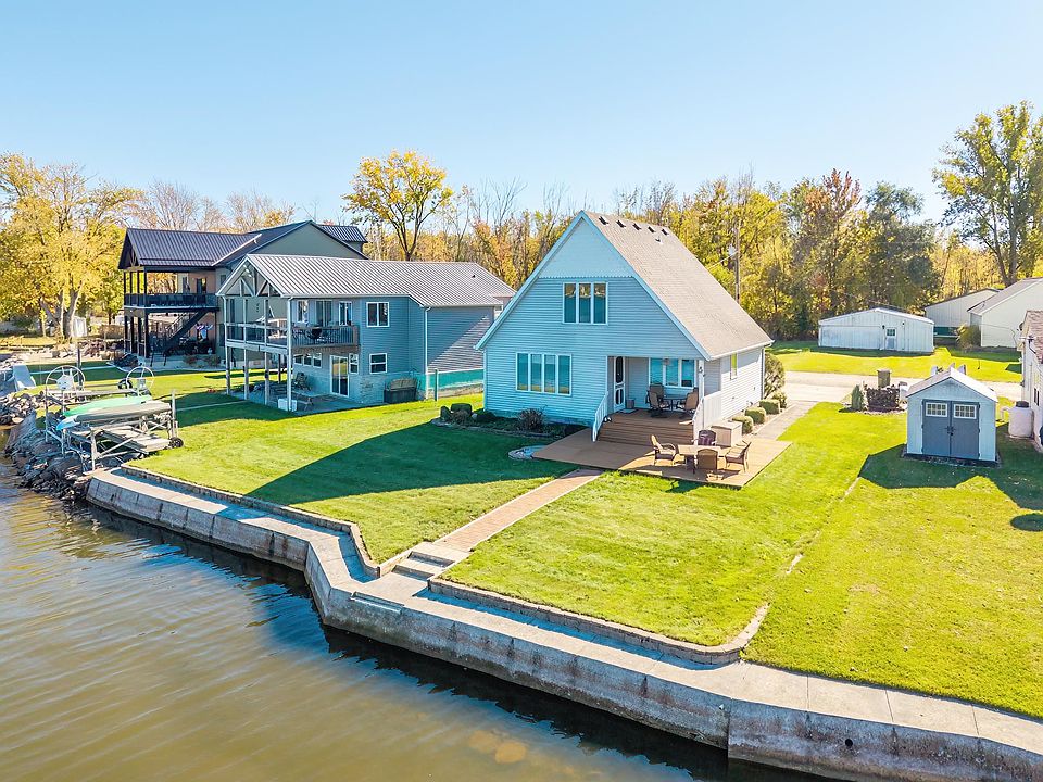 Enjoy year-round lake living in this beautiful turn-key 3-bed, 2-bath home. Inside, the open and inviting layout features a main floor primary suite, soaring 19-ft ceilings, rich woodwork, and custom kitchen cabinetry that highlight the warm, light-filled great room showcasing lake views from nearly every room. Step outside to soak up the sun on the spacious 20x24 lakeside deck or unwind in the shade on the covered patio. The flat lot with 70 feet of frontage offers easy access for swimming, boating, and watersports on Waldron Lake, with connections to three additional lakes and the North Branch of the Elkhart River. Backlot with garage and additional shed available separately.