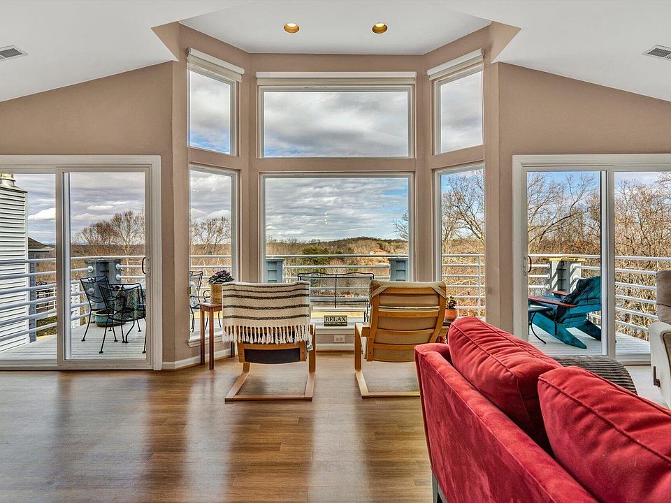 You'll walk in, and immediately know, it's THE ONE! Soak in the sunlight and peaceful water views that come in through your TOP FLOOR unit windows, and find the serenity that you've been needing. The healing landscape of Smith Mountain and the Peaks of Otter are just what you've been seeking. The 2 bedroom, 2 bath floor plan is just the right size and laid out so thoughtfully. You'll appreciate your own outdoor space on either one of the two decks (just recently stained), one to view the sunrise and one to view the sunset. The unit heat pump was just replaced in 2022. The condo is within a small association, with LOW MONTHLY DUES that offer your own private storage, a non-public beach and pavilion with grills, a swimming platform, day docks and boat launch. Stamp your name on this one before someone else takes your dream lake place! The furnishings include: two queen beds, (mattress sets included), dining table and four barstools.