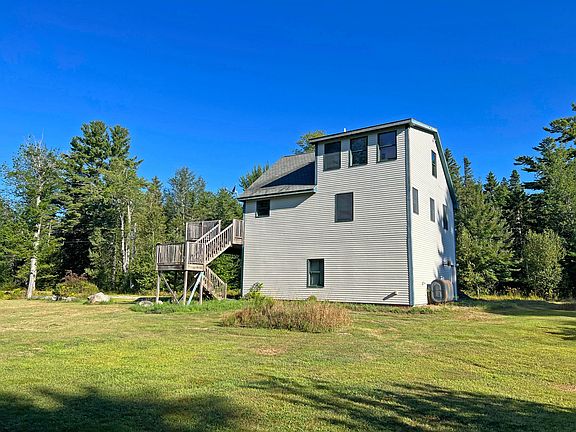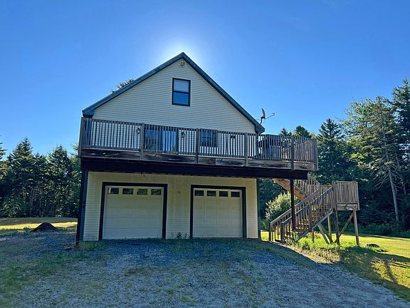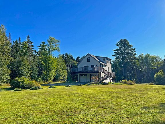 Efficient 2 bedroom, 2 bath home with 2 car garage on 5.7 private acres between Ellsworth and Bangor. This contemporary home offers radiant heat on the 1st floor with finished 2 car garage & laundry room. The first floor could easily be converted into more living space if desired. The 2nd floor features the open kitchen with cathedral ceiling, tile/hw floors and access to the large front deck. The 2nd floor also offers a bedroom with full bathroom. The 3rd floor features a private bedroom suit with large closet and full bathroom w/jet tub. Great location with privacy and room to grow. Enjoy the large open yard surrounded by woods not far from town and close to public lake access.