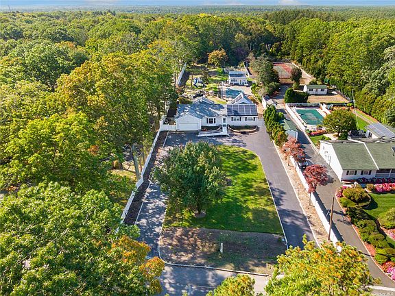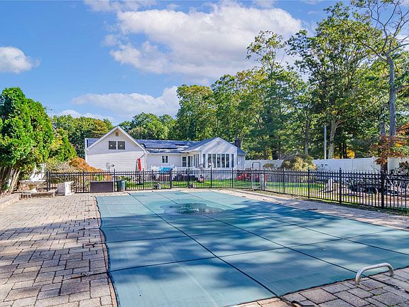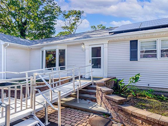Magnificent sprawling Ranch on 100 x 500 ft lot backs up to State Land Features Owned solar Panals, New Roof, New Gutters, Wood floors & Crown molding, Spacious Formal Dining room, Eat in kitchen with plenty of cabinets for storage, Living room recessed lighting with large windows for plenty of natural light Fireplace in den, hardwood floors, , full finished basement, with large den, Full bath and 2 additional room & laundry room, outside entrance (possible M/D with permits) large deck and pavered Patio and 20x40 inground pool and Cabana.beautiful Mature landscaping with Koi pond, 2 car attached Garage with Circular Driveway