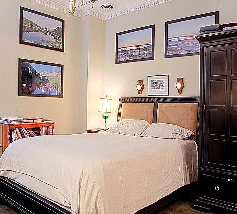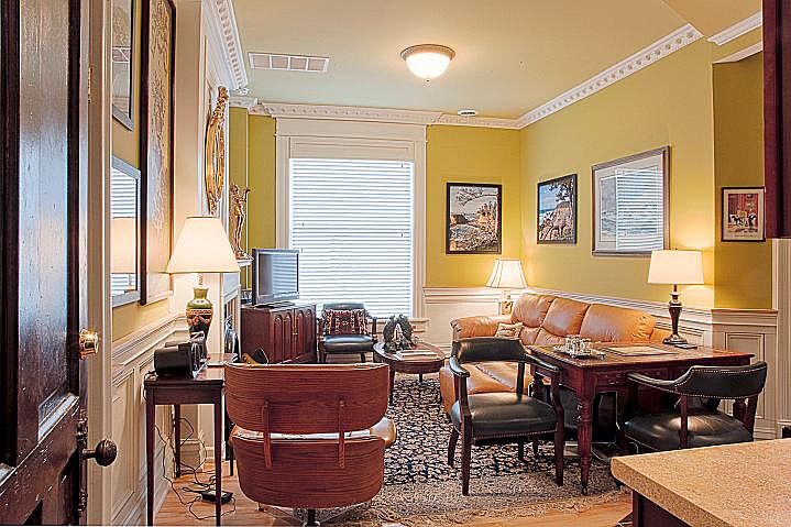 fully furnished, hardwood, tile and carpet flooring, Custom built-in antique mantle & fireplace, central downtown location, covered parking available in adjacent parking garage, Owner payes all utilities; tenant pays cable & internet