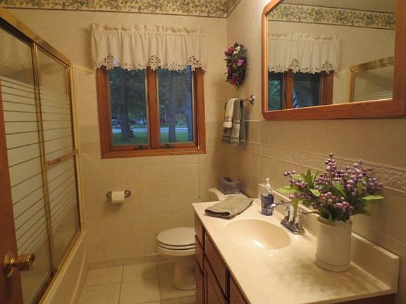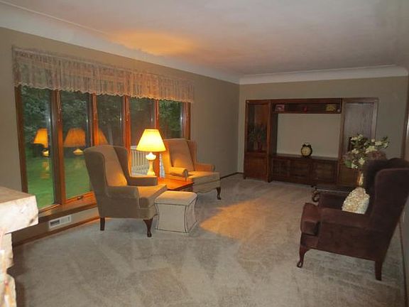 Beautiful one level home on wooded .74 acre lot on Pleasure creek. Many updates, new roof, Anderson windows, central air, carpet, kitchen flooring, bathroom and fresh paint. 2 fireplaces. Great curb appeal. Hardwood floors under carpet. Must See!!, Directions East River Road to 89th Ave. west and left on Quince, right on 88th Lane and left on 88th Ave. to home on left.