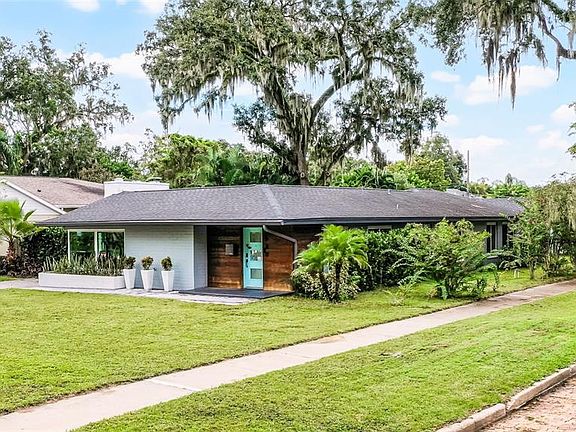Imagine coming home everyday to this timeless mid-century masterpiece and calling it your own...well now you can. 940 Alba Drive, located on a picturesque tree-lined street in one of Orlando's most sought after neighborhoods of College Park, can now be yours. Conveniently positioned on the corner of Alba and Westmoreland with not one, but two driveways, this combination of simple architectural lines and mature landscaping equal the perfect blend of sophistication and modern construction. Once you're past the pavered driveway and across the threshold, you are immediately immersed within the stunning updates that are seen from every corner, beginning with new white oak flooring, quartz countertops, 42" cabinets and complemented by GE Cafe appliances. An oversized living room with wood burning fireplace is adjacent to a dedicated dining space, and all surrounded by colossal sized windows and sliding glass doors, that allow natural light to beam in from every corner from the moment once the sun rises. Your primary bedroom has direct access to the central courtyard with large sliding doors, as well as walk-in closet, and well updated en-suite bathroom; with floor to ceiling tile. A second bedroom has it's own en-suite bathroom, and would be perfect for a younger adult, out of town guests, or even a multi-generational family. Two additional bedrooms are located down the hallway, each of them with their own closets, and access to yet another well-updated full bathroom, making this the full 3rd bathroom of the home. 5 ¼'" baseboards line the hallways and common areas, while recessed lighting in every room sets the stage for when the sunsets. If you like to entertain and be the "go-to" for holidays and family get-togethers, you'll be the new envy of your circle. A substantial sized central courtyard is the focal point of the backyard, which can be seen from multiple areas of the inside of the home, and would be the quintessential backdrop to any of those events, and just imagine enjoying one of your morning cappuccinos or evening cabernets with the tea lights on....does it get any better? Step up your hosting skills and you can even "don your chefs hat" while making pizza in your own original outdoor oven. NO HOA | ZERO CARPET | AT&T FIBER CONNECTED | WATER FILTRATION SYSTEM | NEWER HVAC & WATER HEATER | LEAF FILTERS ON GUTTERS | EV CHARGER IN GARAGE | BUILT-IN CLOSET IN PRIMARY BEDROOM | ALL NEW DUCTWORK | Don't you deserve to walk into a home like this every day?