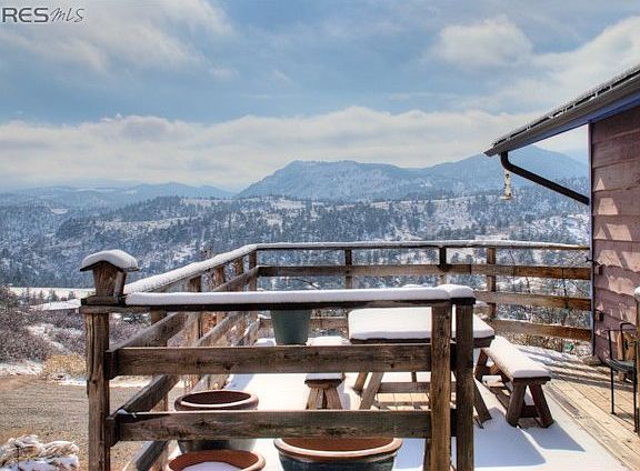 Private 10 acre retreat minutes from downtown Lyons. Expansive views across valley to snow capped peaks to the west and open space to the east. Open layout on main level takes advantage of abundant natural light. 3 bedrooms up with hardwood floors and office or study space off living room. Oversized 2 car garage and abundant storage space. Rear deck with hot tub and views of natural rock formations and wildlife.