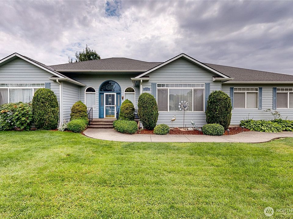 Wonderful space in this 4 bedroom, 2 bath, 2,443 sq. ft. one-level home. An Alan Ashmore custom built home. There is a surround sound system in the living room, dining room, and kitchen. The living room has a gas fireplace, large mirror, and bookcases. Spacious formal dining room with tray ceiling and chandelier. Hunter Douglas window treatments throughout. Kitchen appliances and washer/dryer included. The double garage has an attached workshop/garden space with an overhead door to the backyard. Nearly half an acre, with completely fenced backyard and underground sprinklers. Beside the garage in a concrete RV pad. You'll enjoy the oversized concrete patio that is accessed from the living room slider.