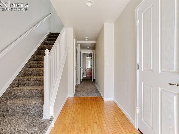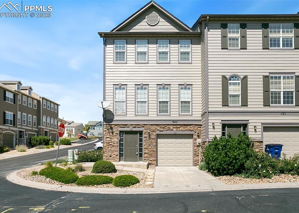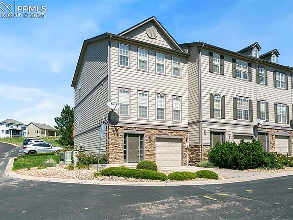 Welcome to this well-maintained, end-unit townhome in the coveted Woodmoor Community. The main level great room has an open-concept feel. The large kitchen opens up to the living room, which has double sliding glass door that provide plenty of natural light. Spend your evenings by the tiled gas fireplace, or retreat to the private back deck that is perfect for entertaining. Upstairs has to two Master Suites, each one featuring its own en-suite bathroom and walk-in closet. Downstairs is a third bedroom with its own private bathroom, perfect for for a guest room, an office, or multi-generational living. There is plenty of off-street parking nearby in addition to the one car garage. The location near I-25 is perfect for commutes to Colorado Springs, or Denver. There are nearby trails, the YMCA, and plenty of shopping. Come and see, your new home awaits!
