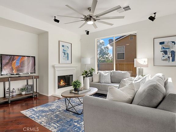 This is a beautiful 3 bedroom +LOFT (builder option as a 4th bedroom), 2.5 bath DETACHED townhome-style End Unit in the Highly Desirable and Highly Sought After La Habra Knolls complex. It's rare to see one on the market. This is one of the more private homes located at the back of the GATED complex. As you enter, you’ll be pleased with the open concept floorplan featuring hardwood floors, built in speakers in the living room, decorative lighting, a cozy fireplace and walls of windows letting the sunshine flow in. The breakfast bar allows for additional seating next to the dining area. The kitchen is complete with spacious granite counters, abundant white cabinetry and stainless appliances, including the refrigerator. Upstairs also has wood flooring throughout, with tile in the bathrooms. The primary suite and bathroom has been beautifully upgraded with custom wall treatments, painted cabinetry, glass tile, walk in shower with a glass surround and a separate soaking tub. The walk in closet is complete with built in shelving and drawers. Both secondary bedrooms are good sized and one has a murphy bed already installed. The 4th bedroom is currently a loft area, a builder option to be a 4th bedroom, it can be converted easily into a bedroom. The upstairs laundry room makes this chore easier for all. The backyard / patio area is also amazing. There’s a flagstone patio area perfect for dining alfresco (patio furniture is included). Recently installed artificial turf makes for easy maintenance and the above-ground “Spool” (Spa/Pool) stays with the property too! This can be used as a spa or as a lap pool! Other features/upgrades to the property include: Spa/pool 2015; slab/flagstone patio 2007; primary bathroom remodel 2015; A/C replaced 2020; Water Heater replaced 2022; interior painting 2022; ceiling fans in all rooms and epoxy floors in the garage. There is plenty of guest parking throughout the complex, which has a BBQ and playground area. The La Habra Knolls complex is nestled behind the La Habra post office and nearby Westbridge Golf Course, Vista Grande Park, Shopping and entertainment.