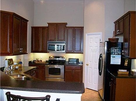 Short Sale. Former model with 4 bedrooms, 3 baths, 3 car garage, paver driveway, and all the upgrades! This gorgeous Morrison Home has granite counters, stainless Whirlpool appliances, 42 inch cherry cabinets with crown moulding, pantry, breakfast bar and in pristine condition! The master suite has a tray ceiling, large closet, spacious master bath with dual marble vanity large garden tub and separate shower. Extras in this split plan include tile though the common areas, computer nook with built in-desk and cupboards, French doors to a fenced yard and lanai with extended patio, wood burning fireplace in the family room, tray ceilings, surround sound, lush landscaping, reclaimed water for irrigation, a manicured yard and more. Close to all major roads, hospital, shopping, theme parks, golf and downtown Orlando. This home is simply stunning!