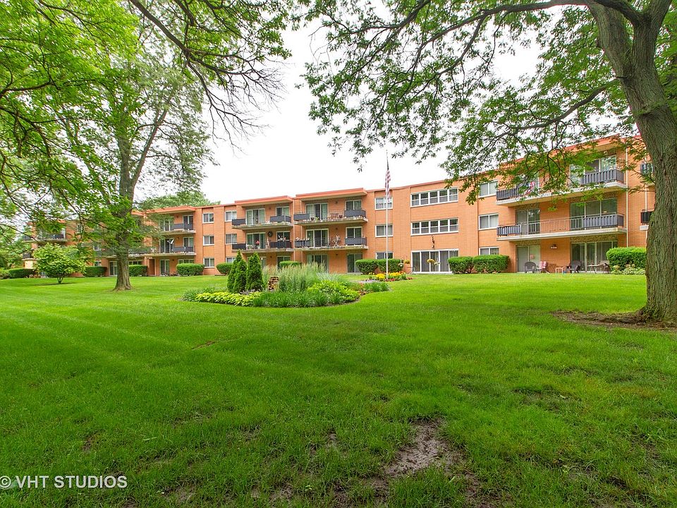 Extremely well maintained and lovingly cared for 1st floor unit. Lovely patio off of livingroom area. Steps from side entrance, elevator and laundry. This unit includes 1 inside parking spot. (Hard to come by) Well managed building with security entries, and elevator building. 55+ building. Reception rooms on every floor, library, and exercise room and also a carpenters room. Garage is #41 .....See this today. No FHA.